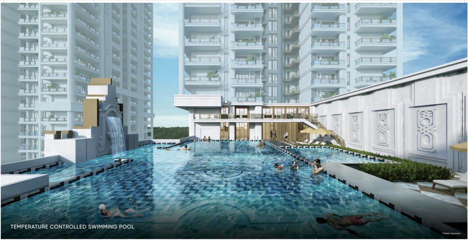 Prime location at zero km from Dwarka Expressway with ultra-luxury 3.5 & 4.5 BHK homes featuring panoramic views, state-of-the-art air conditioning, grand lobby, expansive balconies, sky club, semi-furnished units, twin master bedrooms, IGBC Gold rating, 50,000+ sq.ft. retail space, themed greenery, ample parking, and well-developed social infrastructure.
